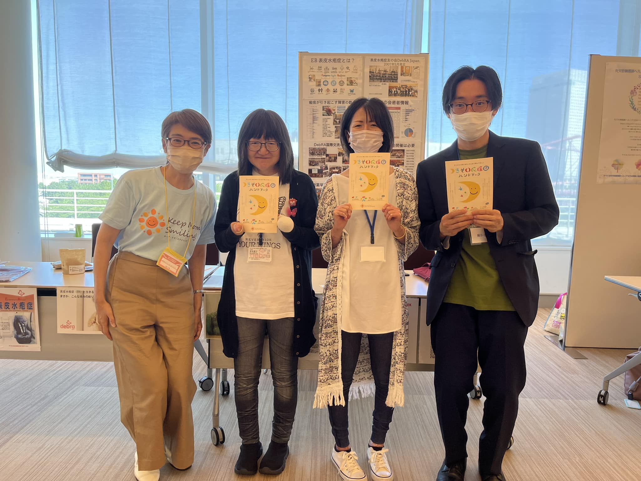 その中で、私は病気についてまだまだ勉強不足だと痛感しました。これまで友の会の活動に参加する中では主に自身の表皮水疱症や皮膚疾患に目を向けていました。しかし、今回参加した学会で様々な患者会の出展展示の方々とお話する中で、皮膚に関わらず多くの小児疾病があり、そして多くの方々が子供達のケアに携わっていることを改めて認識しました。