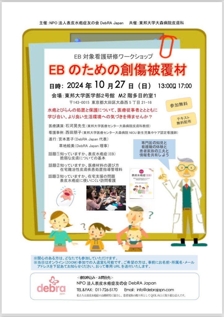 申込先:NPO法人表皮水疱症友の会DebRA Japan