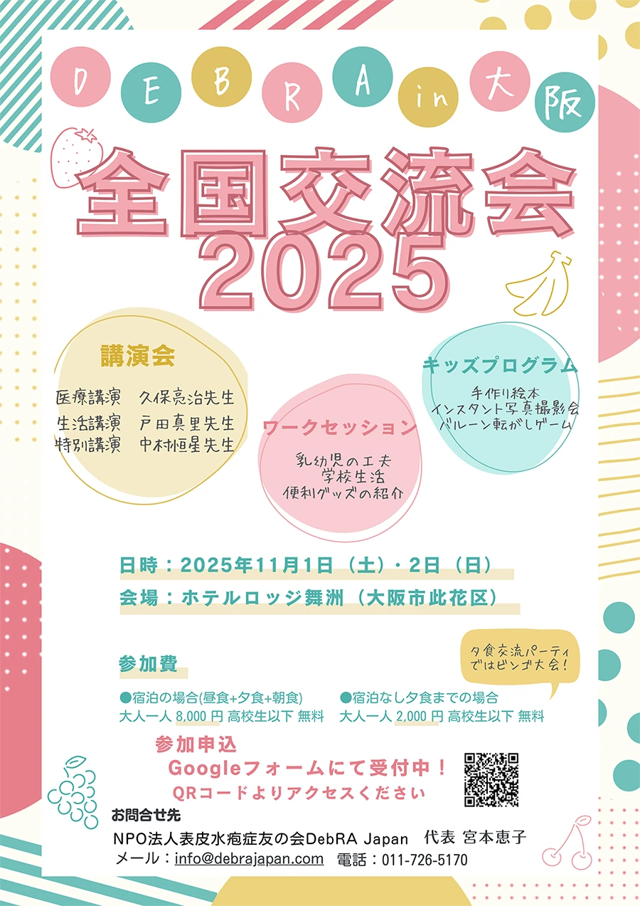 表皮水疱症の当事者やその家族、先生方、支援者の方とお会いできる貴重な機会です。